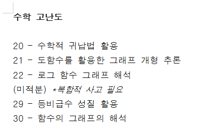 예를 들어 수열 문제에서 단순히 일반항을 구하는 건 어렵지 않을 수 있어요. 그런데 여기에 함수 조건이나 그래프 해석, 경우의 수적 사고가 더해지면 난도가 확 올라가죠. 그래서 문제를 풀 때 단순히 정답 맞히기에 그치지 말고, “이 문제는 어떻게 변형될 수 있을까?”를 한 번 더 생각하는 습관을 들이는 것이 정말 중요해요.