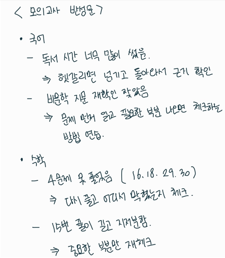 <출처: 멘토 본인 – 간단하게라도 이렇게 모의고사 분석 과정이 필요함>