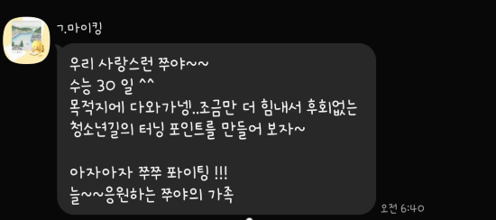 이번 글을 쓰기 위해 작년의 기억을 더듬어보며 사진첩을 쭉 훑어봤습니다. 분명 힘들고 지친 순간들만 많았다고 생각했던 고3 시절이었는데, 제가 잊고 있던 행복한 순간들이 정말 가득했습니다…ㅎㅎ