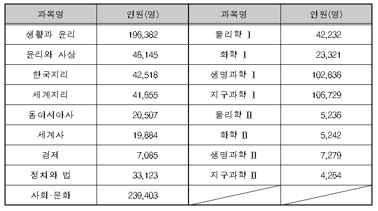 [2026학년도 수능 탐구 과목별 선택 인원 현황]