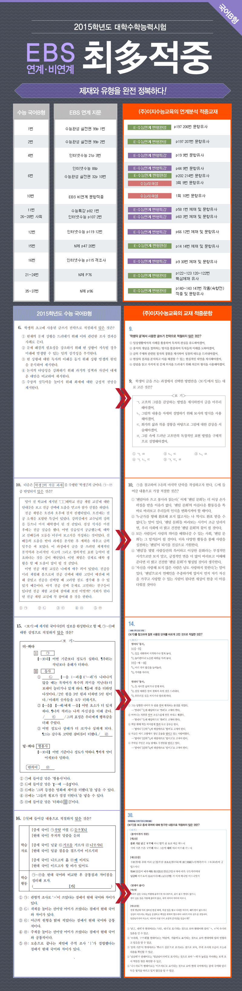 [수능] 2015 수능 EBS 연계·비연계 최다적중!! - 국어B형