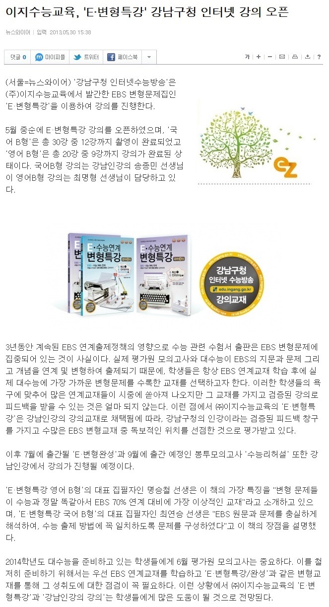 [수능] E 변형특강 강남구청 인터넷 강의 교재채택